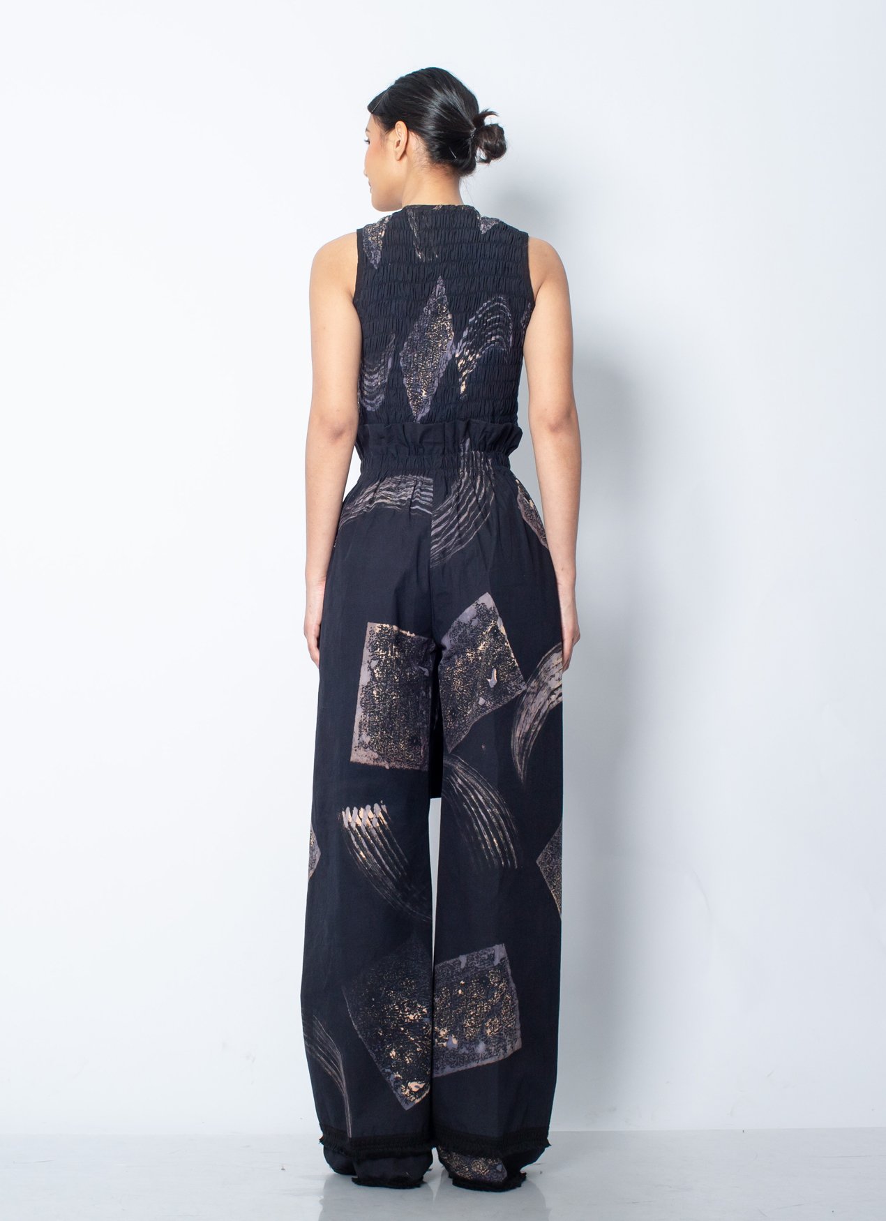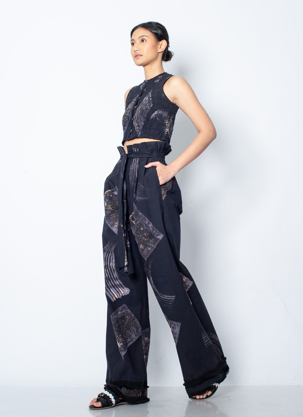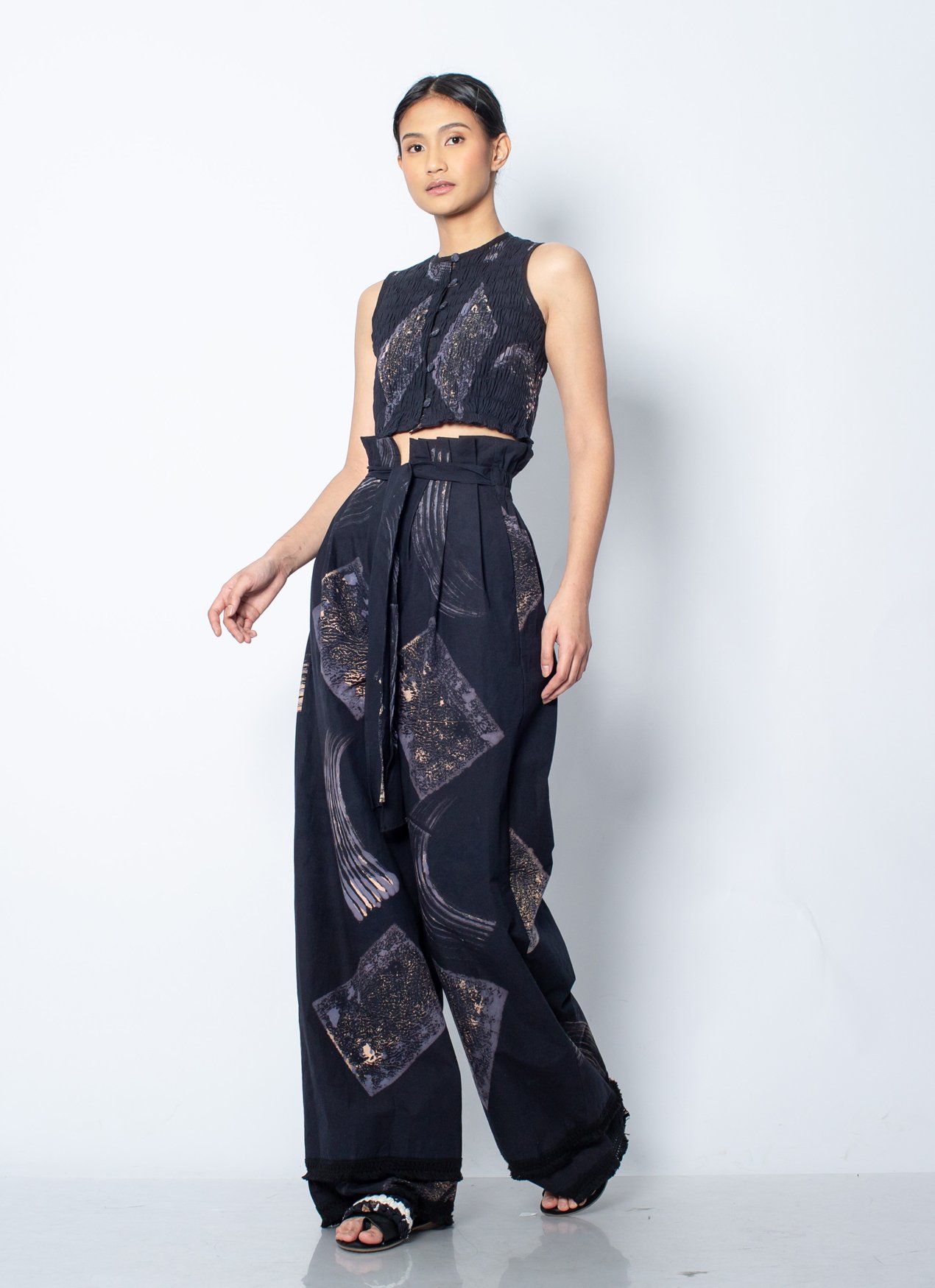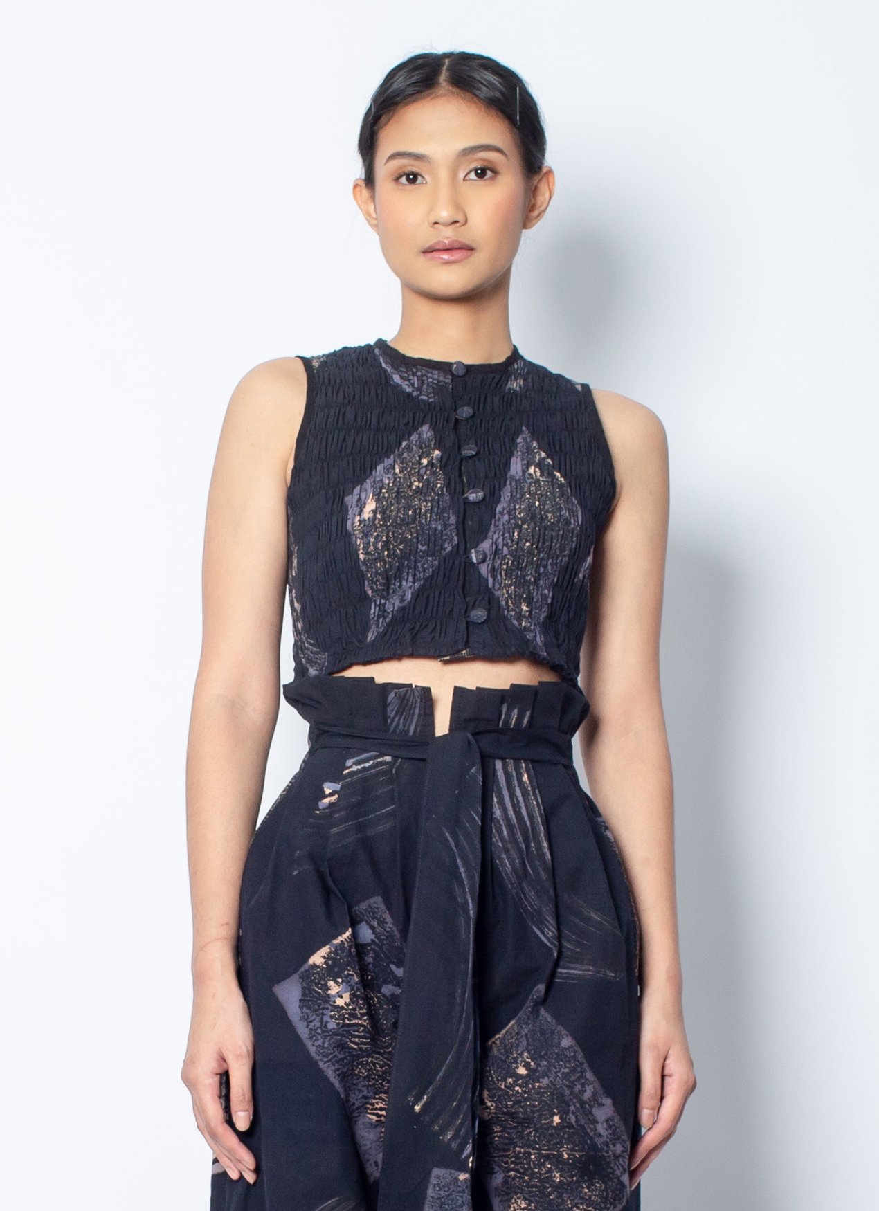 Sleeveless pleated top with buttons and round neckline. Proudly Made from Batik Lukis Pekalongan. Versatile to be worn with jeans, or matching Ora batik pants.