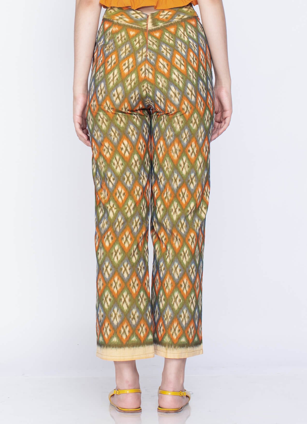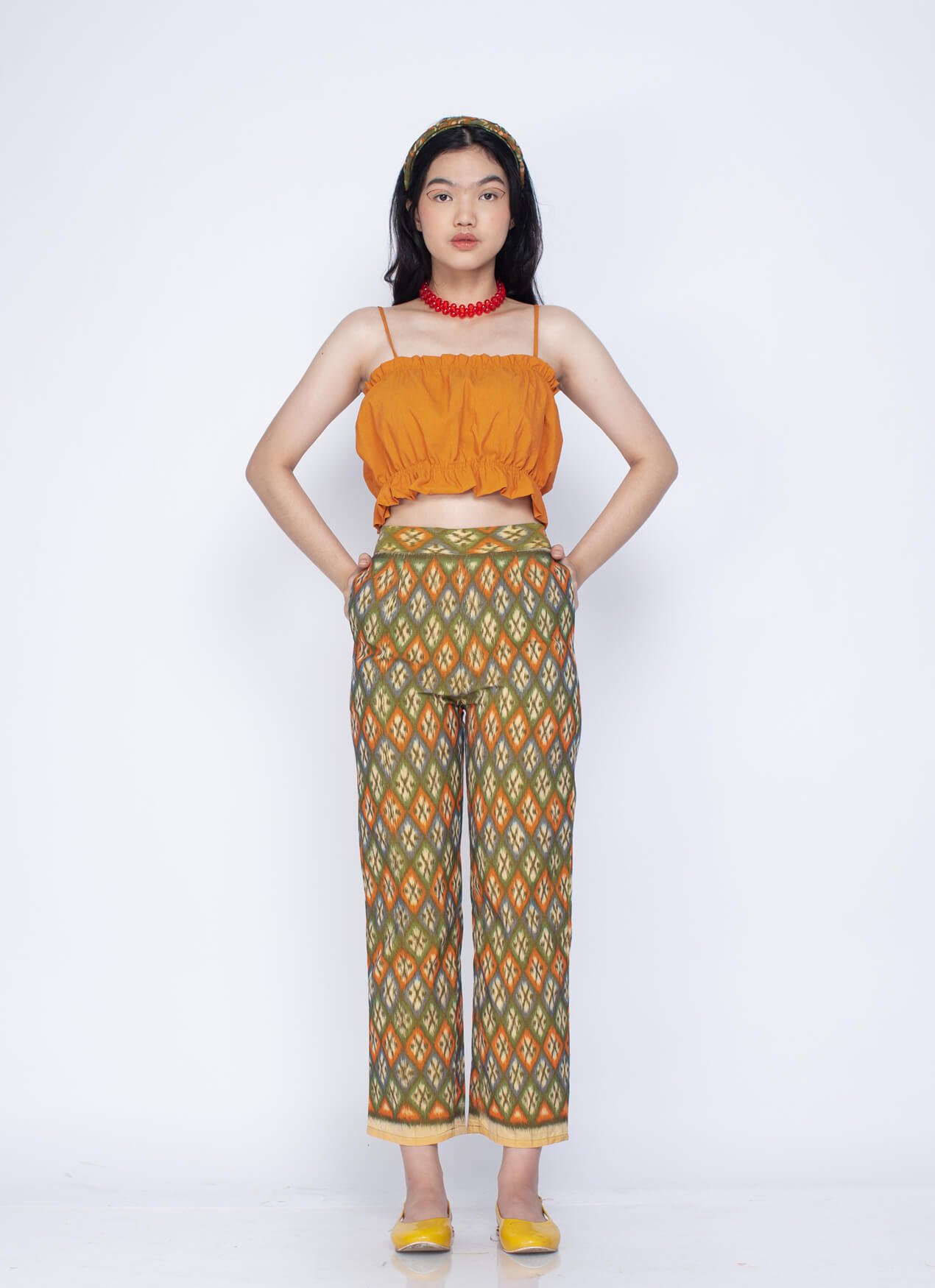 Straight pants with side pockets, fastening closure, that falls on your ankle. Made from Jepara’s tenun in vibrant color and signature tenun pattern. Bring a piece of Indonesia everywhere you go.